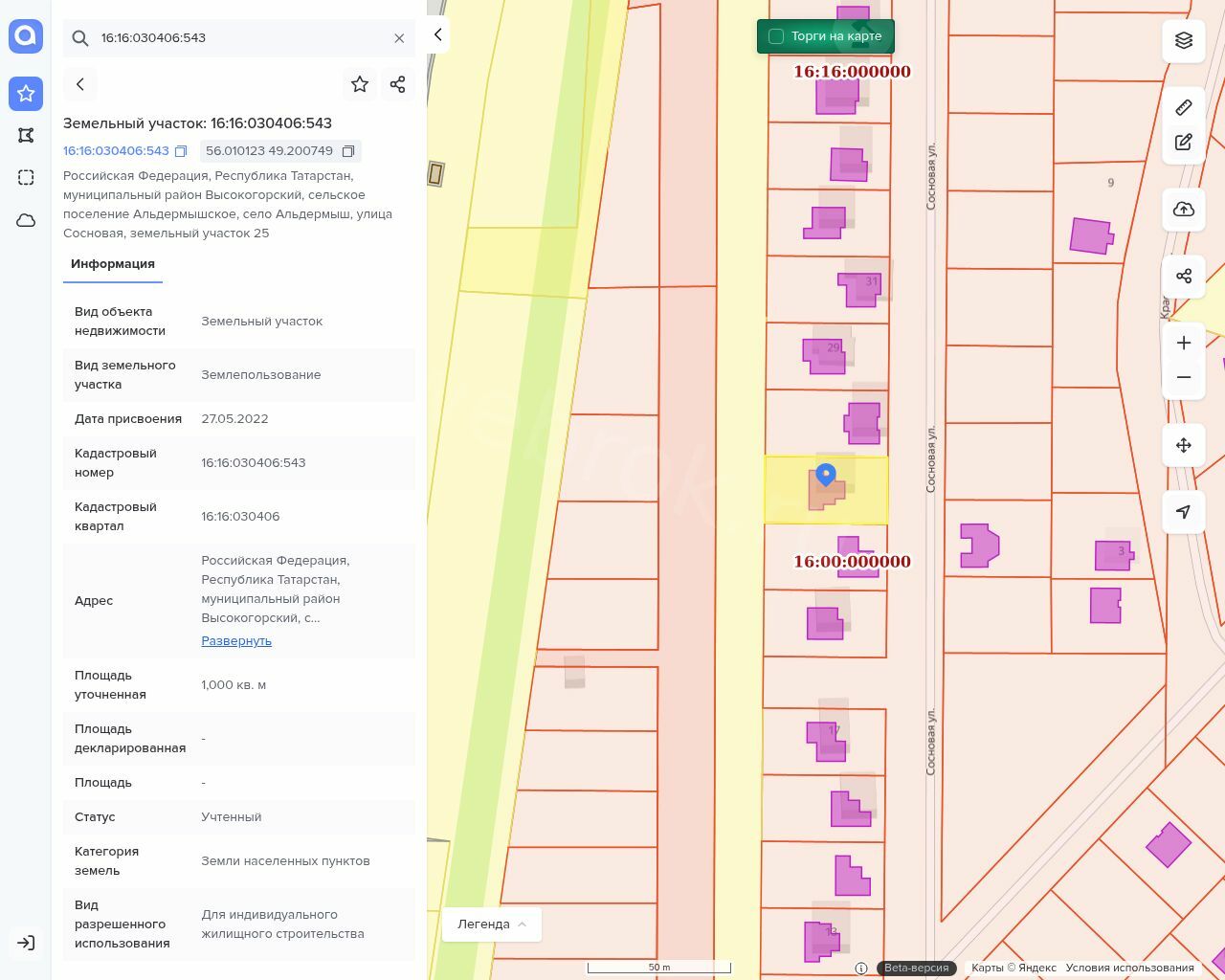 Земельный участок площадью 1000 кв.м с кадастровым номером 16:16:030406:543,